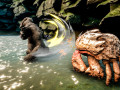 Остров таит в себе множество опасностей, с которыми вам придётся столкнуться. Болота, водопады и запутанные джунгли точно вас задержат, но вряд ли убьют, ведь этим делом будут активно заниматься обитатели «райской» земли. Раскидывайте во все стороны толпы противников, набивайте ураганные комбо, используйте первобытную ярость, изучайте новые приёмы и занимайтесь скалолазанием в поисках полезных сведений. Впрочем, несмотря на невероятную силу главного героя, расслабляться не стоит, ведь по дороге вы будете встречать грозных боссов, способных угомонить нашего примата-переростка. Конг не всегда был кошмаром всех животных, и теперь у вас появилась отличная возможность узнать, как этот гигант стал настоящим королём.
