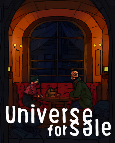В Universe for Sale переплетаются судьбы самых разных персонажей. Культист, жертвующий плотью ради просветления, продавщица вселенных, которые можно уместить в кружку, разумный примат — посреди всего этого вам предстоит искать своё предназначение. Место действия — колония, затерявшаяся в облаках Юпитера. На ней обитает множество тех, кто, используя уникальные способности героини, попытается разгадать загадки космоса, нравится это протагонистке или нет.