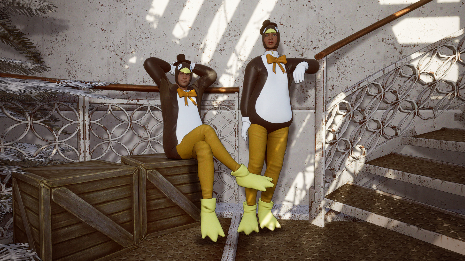 Пассажиры лайнера «Алитея» встречают зиму на позитиве — даже несмотря на то, что каждому из них грозит смертельная опасность. Если вы отыгрываете киборга-убийцу, тоже смело наряжайтесь в весёлые костюмы, ведь они помогут лучше замаскироваться и ближе подобраться к жертвам.